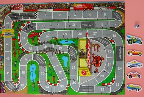 Lo armás, luego con los dados y los autos jugás a las carreras y después lo das vuelta y pintás ¿Qué más querés?