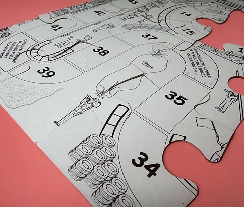 Incluye 28 piezas de cartón extra gruesas + crayones + dado y autitos en Goma Eva para la carrera.