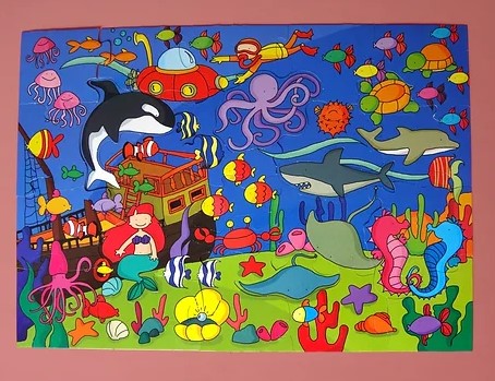 ¡Animate a descubrir todos los increibles amigos que habitan en el fondo del mar! Eso si, OJO con los TIBURONES!! ¿Te contamos un secreto? El reverso de este rompecabezas es para pintar!!
